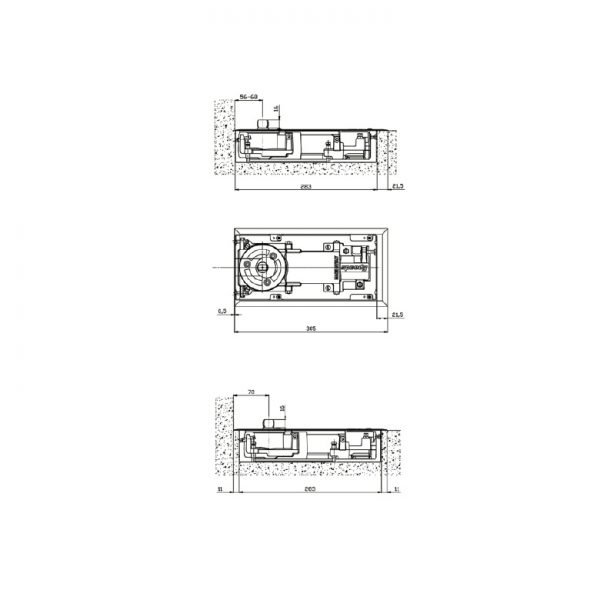 Duraciones de más de diez años. Grandes posibilidades de regulación en el interior de la caja a cementar, sobretodo en el sentido longitudinal para permitir la utilización del cierrapuertas incluso donde existen distancias de posicionamiento de perno muy diversas.