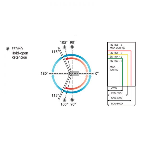 Mecánica muy fiable garantizada por más de 5 millones de piezas instaladas, ideal para puertas entre 100 y 110 cm.